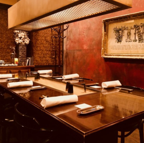 料理人の技を間近でご覧いただけるカウンター席です。目の前で調理される様子や、食材が焼ける音、香りを五感で感じながら、ライブ感あふれるお食事をお楽しみいただけます。
